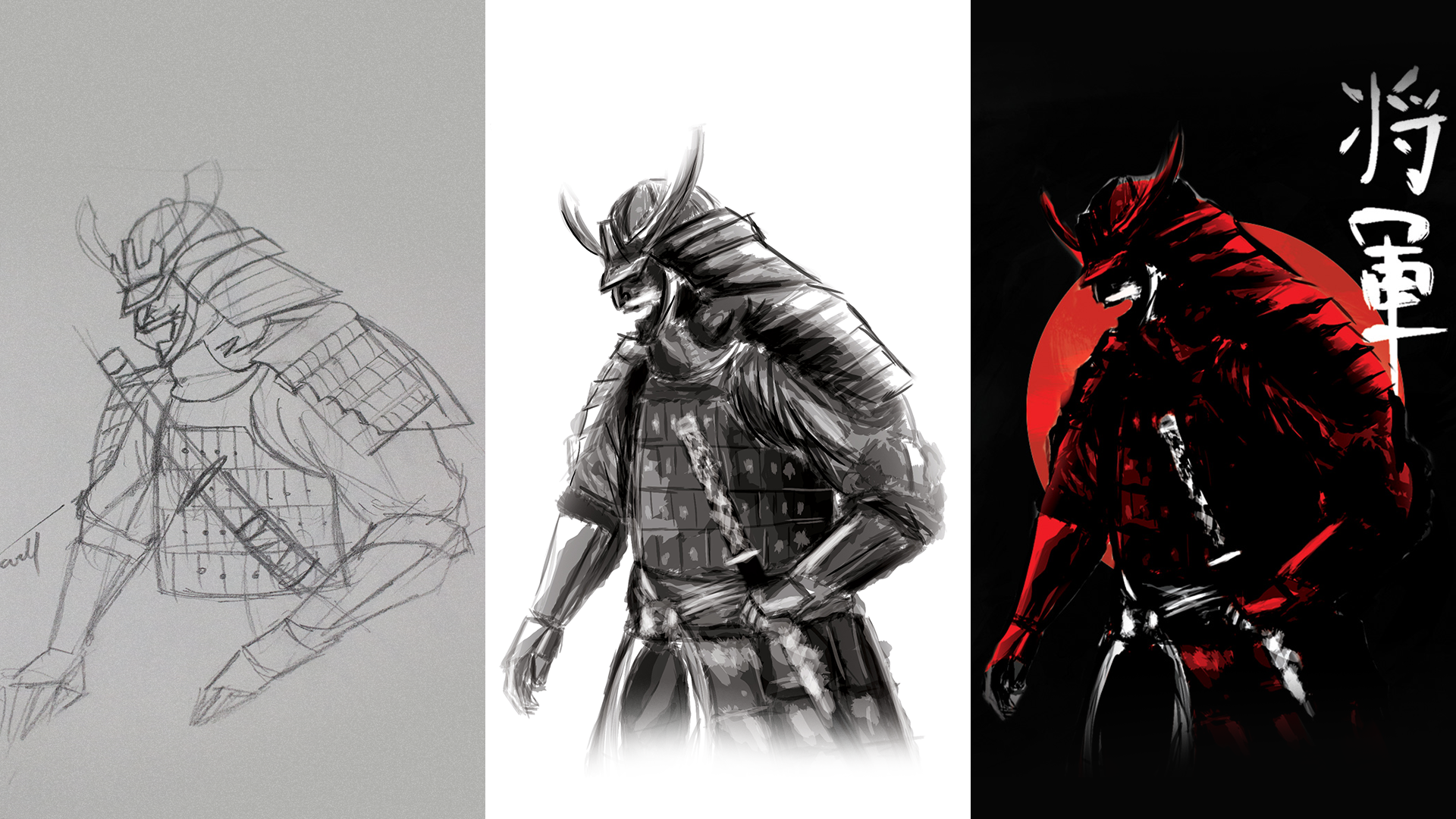 The illustration was done through Photoshop and used the Japanese Sumi-e ink painting style.